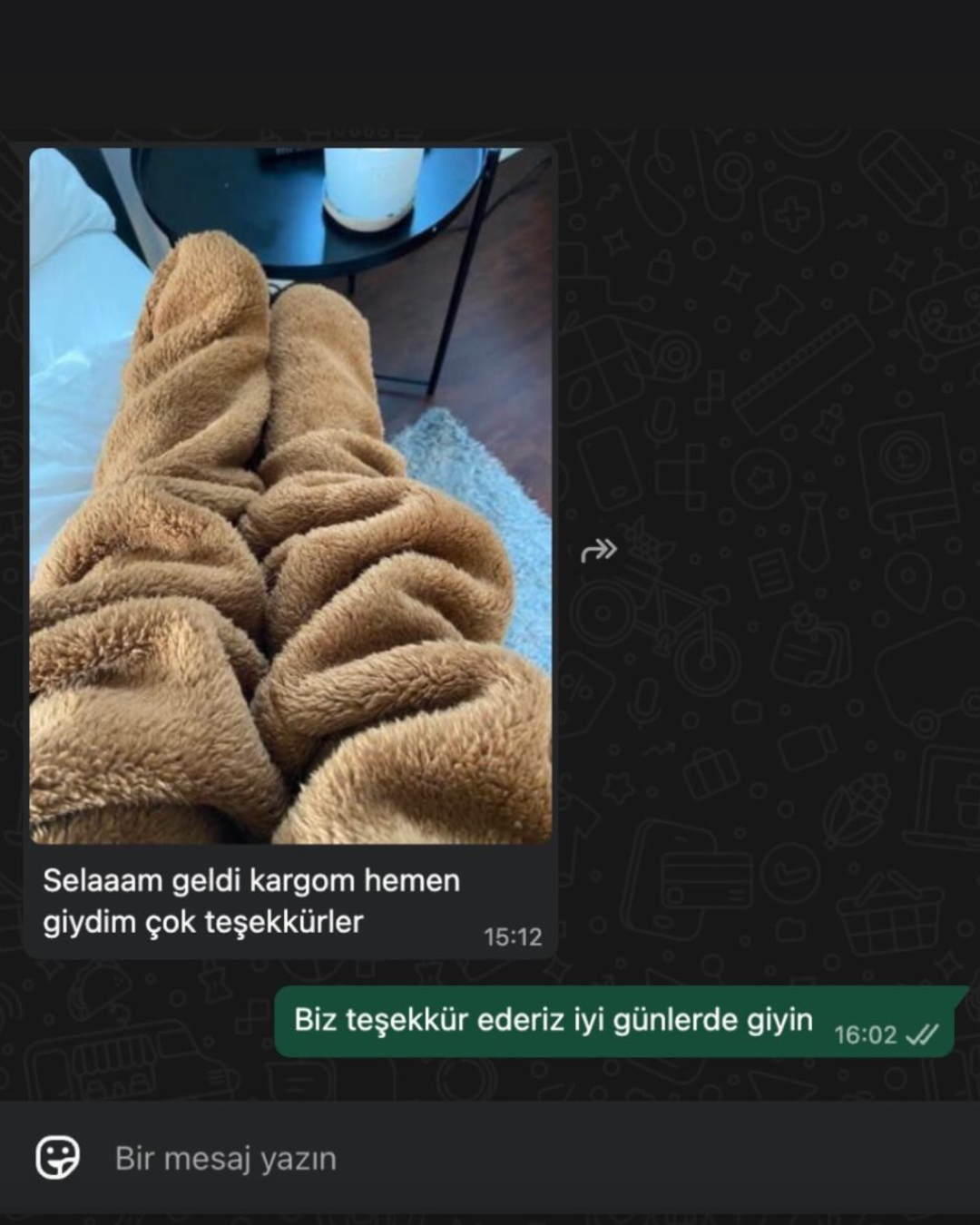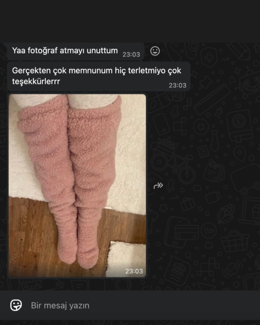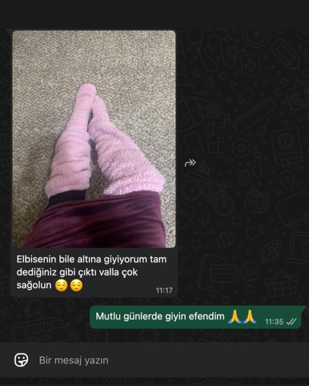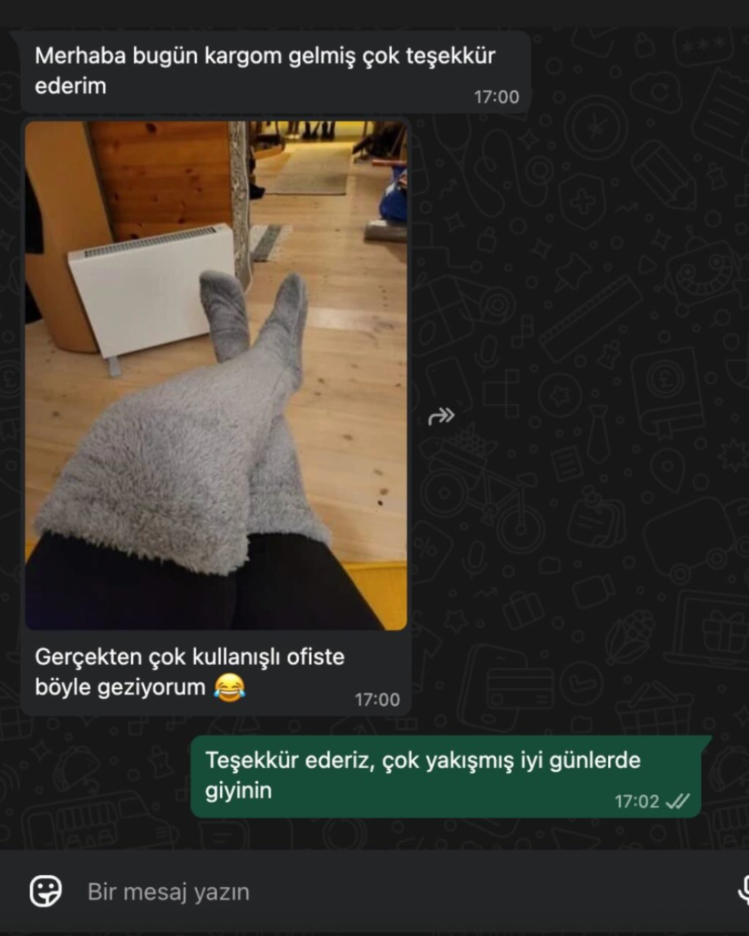 Ayaklarının gün boyu sıcacık kaldığını söylüyor.